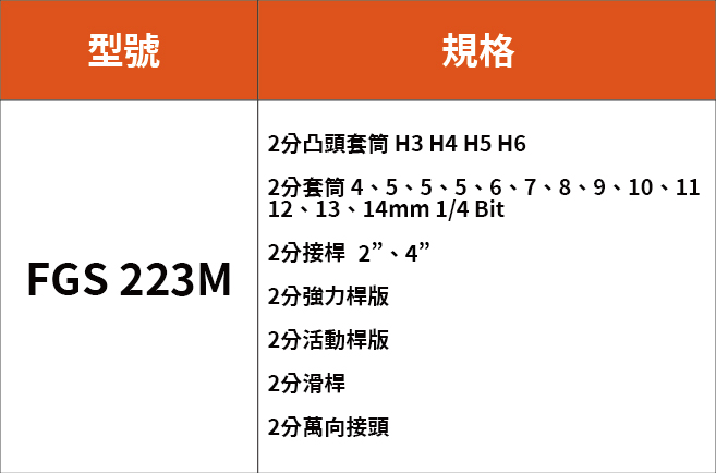 首頁 > 產品介紹 > 套筒組FGS | 223M 1/4"套筒 23件組